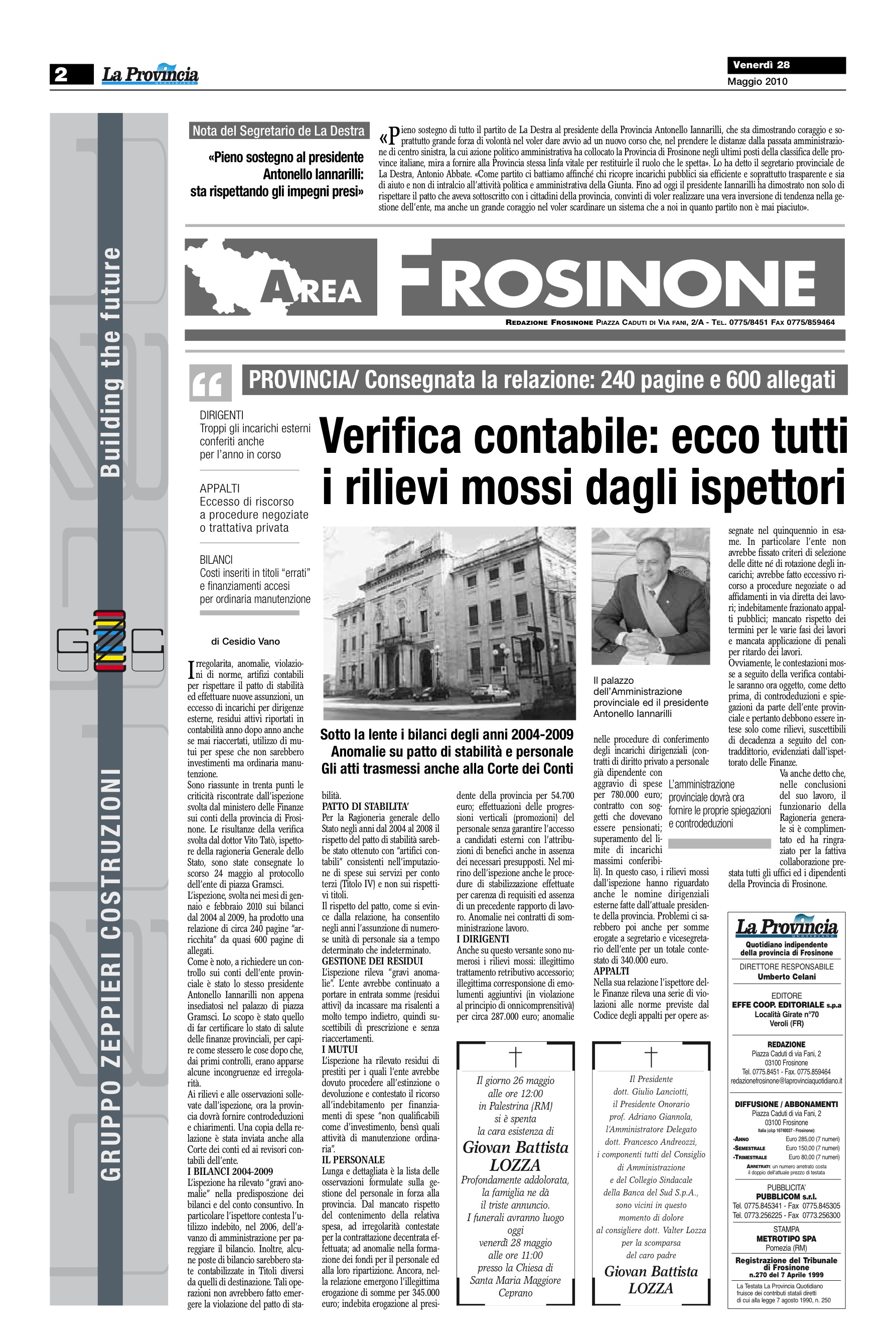 Come è noto, a richiedere un controllo sui conti dell’ente provinciale è stato lo stesso presidente Antonello Iannarilli non appena insediatosi nel palazzo di piazza Gramsci. Lo scopo è stato quello di far certificare lo stato di salute delle finanze provinciali, per capire come stessero le cose dopo che, dai primi controlli, erano apparse alcune incongruenze ed irregolarità.