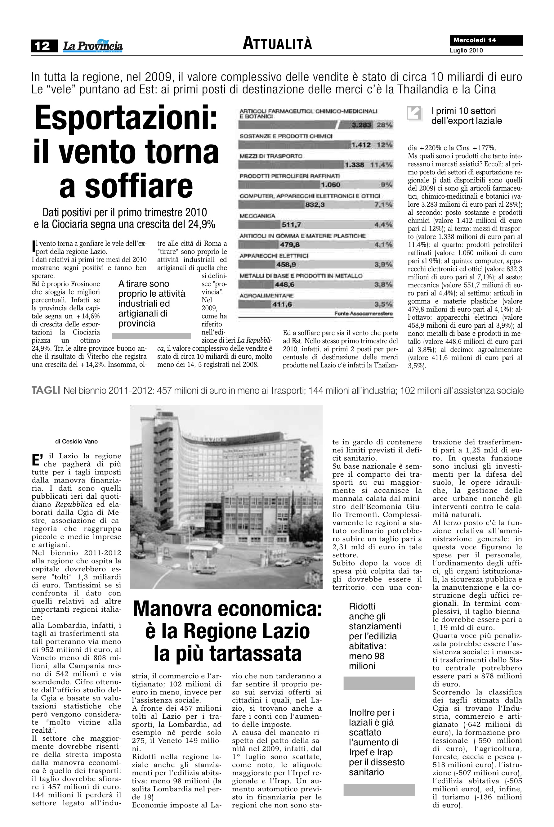 E’ il Lazio la regione che pagherà di più tutte per i tagli imposti dalla manovra finanziaria. I dati sono quelli pubblicati ieri dal quotidiano Repubblica ed elaborati dalla Cgia di Mestre, associazione di categoria che raggruppa piccole e medie imprese e artigiani.