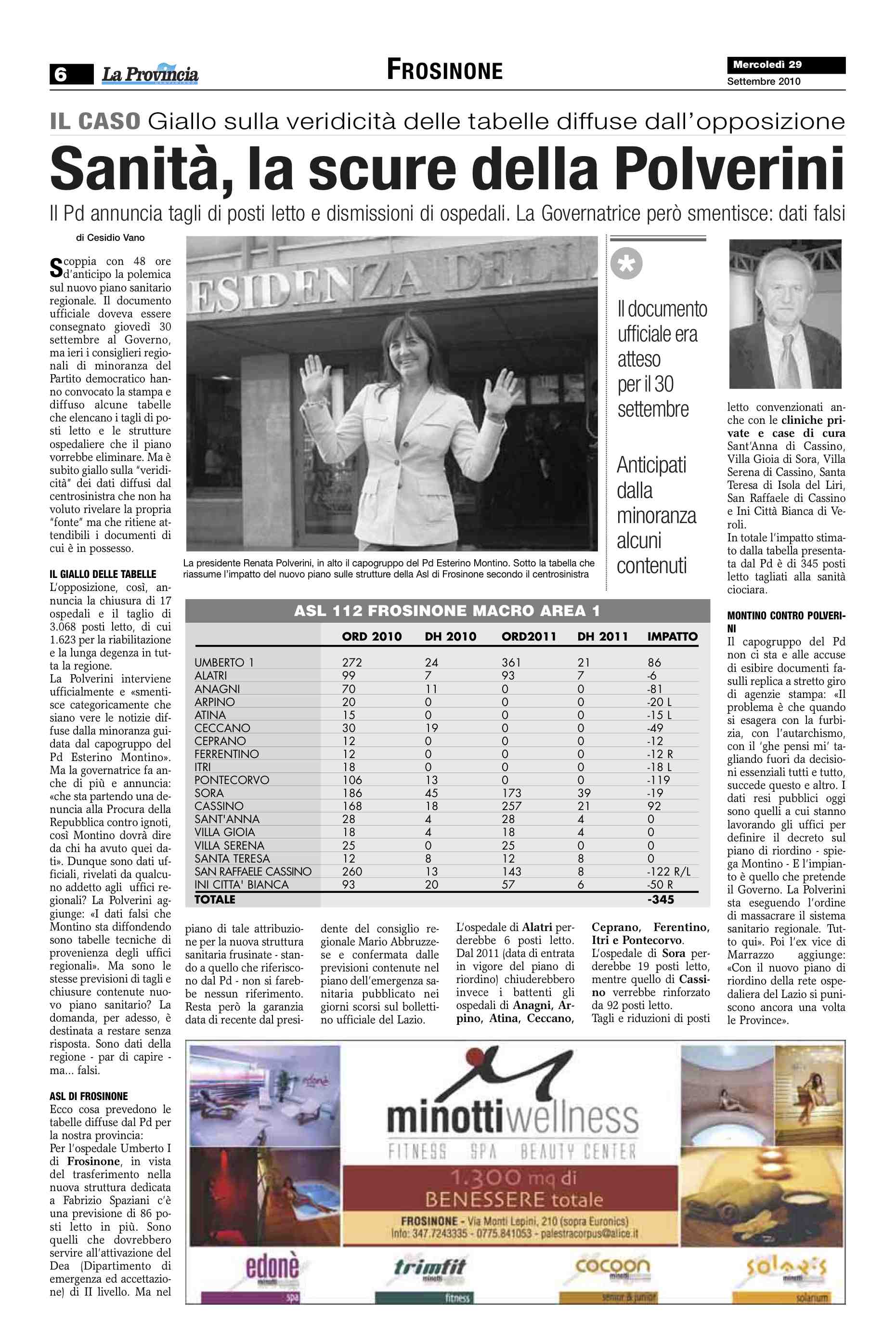 La Polverini interviene ufficialmente e «smentisce categoricamente che siano vere le notizie diffuse dalla minoranza guidata dal capogruppo del Pd Esterino Montino». Ma la governatrice fa anche di più e annuncia: «che sta partendo una denuncia alla Procura della Repubblica contro ignoti, così Montino dovrà dire da chi ha avuto quei dati». Dunque sono dati ufficiali, rivelati da qualcuno addetto agli uffici regionali? La Polverini aggiunge: «I dati falsi che Montino sta diffondendo sono tabelle tecniche di provenienza degli uffici regionali». Ma sono le stesse previsioni di tagli e chiusure contenute nuovo piano sanitario? La domanda, per adesso, è destinata a restare senza risposta. Sono dati della regione – par di capire – ma… falsi.