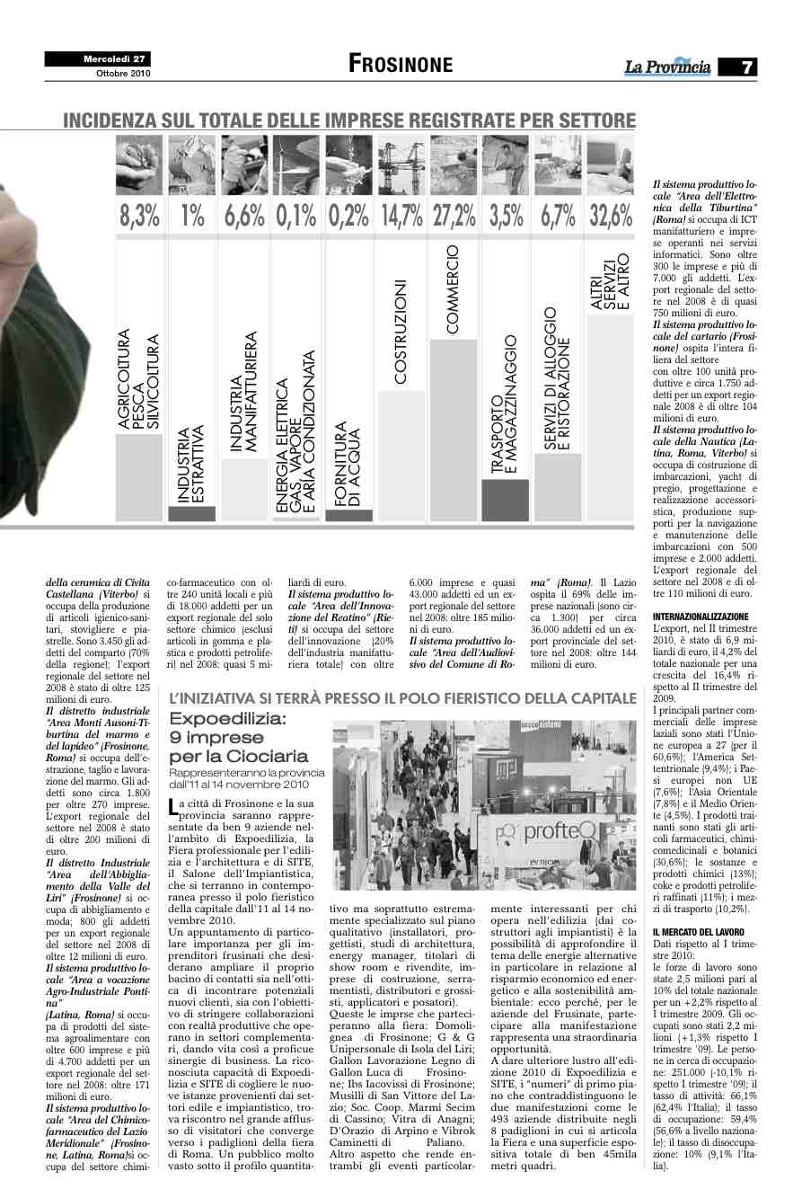 (Latina, Roma) si occupa di prodotti del sistema agroalimentare con oltre 600 imprese e più di 4.700 addetti per un export regionale del settore nel 2008: oltre 171 milioni di euro.