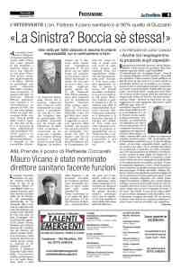 «La sinistra continua a raffigurare il piano sanitario varato dalla Polverini come quanto di più sbagliato e dannoso possa esserci, ma dimentica che quel Piano, tolti alcuni necessari aggiustamenti, è lo stesso – Montino presidente reggente – elaborato dall’allora commissario Guzzanti». E’ quanto afferma l’onorevole alfredo pallone, parlamentare europeo e vicecoordinatore regionale del Pdl, che in una nota spiega: «Noto un certo nervosismo della sinistra, circa la sanità della nostra regione, che dice di tutto e il contrario di tutto addebitando alla presidente Polverini scelte e responsabilità che determinerebbero il degrado in cui verserebbe il Servizio Sanitario Regionale. Vorrei che si facesse chiarezza una volta per tutte, chiamando in causa attori e protagonisti, che per le cariche ricoperte, hanno partecipato alle possibili soluzioni per far fronte alla situazione di difficoltà economica e strutturale in cui versa per l’ appunto il nostro sistema sanitario e quindi anche le casse della Regione. La sinistra ritiene che il riassetto della nostra rete ospedaliera (Decreto n° 80 del 2010) sia un colpo ferale all’ assistenza dei nostri concittadini scordando in realtà che tale piano non è altro, con alcuni miglioramenti, quello che fu già elaborato dall’ allora commissario prof Guzzanti con la presidenza facente funzione della giunta regionale di Esterino Montino. Non avrei difficoltà, come ho già fatto altre volte, a confutare con dati oggettivi le pervicaci ipocrisie della sinistra, ma ritengo che sia più proficuo ed opportuno verificare chi dice le bugie, e per far ciò chi meglio dell’ allora Presidente della Commissione Sanità On. Luigi Canali, il quale fece una serie di audizioni proprio sul riassetto della rete ospedaliera elaborato dal già menzionato prof. Guzzanti. Una vera e propria operazione verità, in quanto lo stesso On. Canali potrebbe evidenziare le parti modificate dal piano Polverini rispetto a quello Guzzanti e che la sinistra non ebbe la responsabilità di attuare facendo ulteriormente aumentare il disavanzo e la mancata risposta ai bisogni dei cittadini. Una volta per tutte ciascuno si assuma le proprie responsabilità, noi lo continueremo a fare nel segno del rinnovamento e, per l’appunto, del fare».