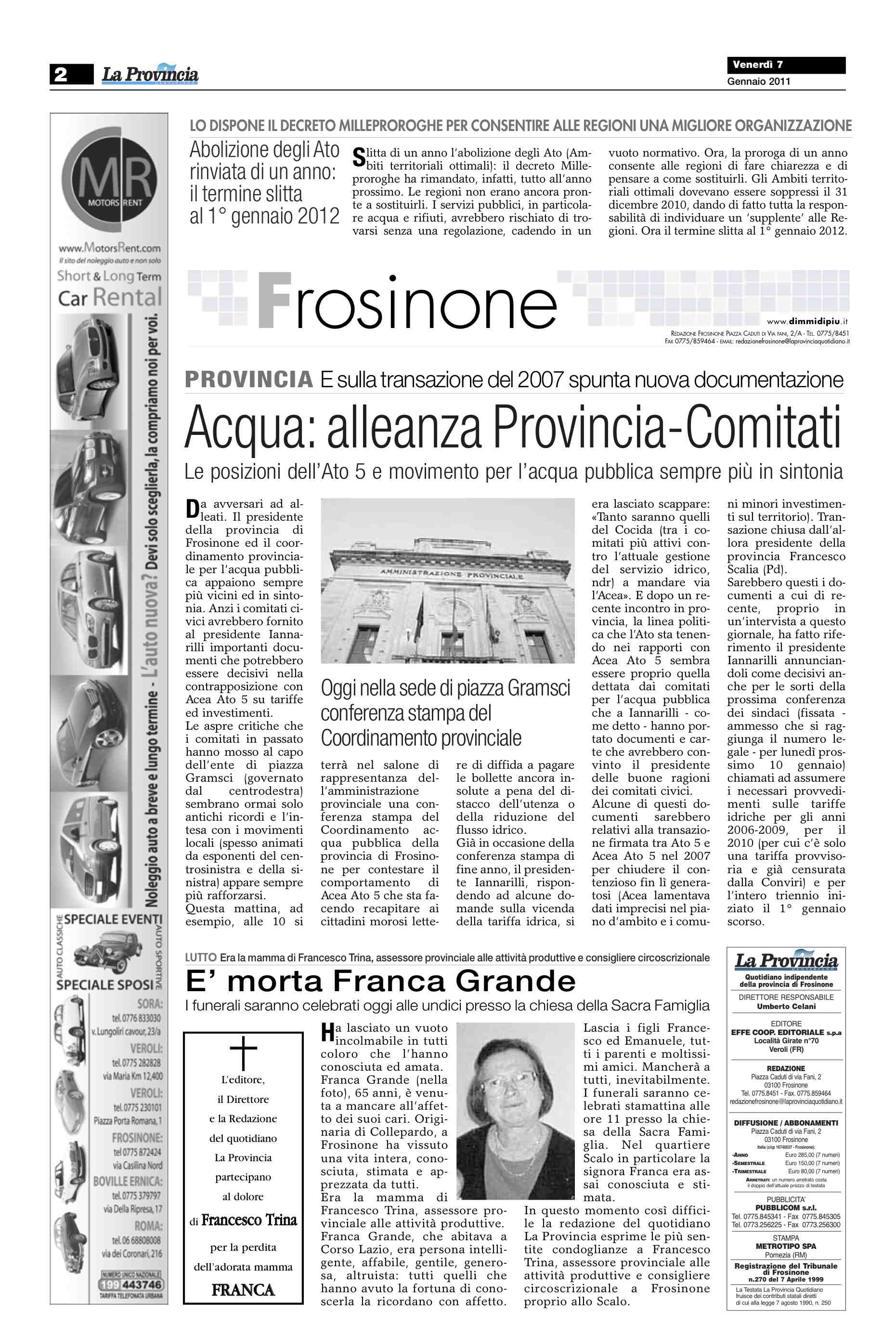 Da La Provincia Quotidiano del 7 gennaio 2011