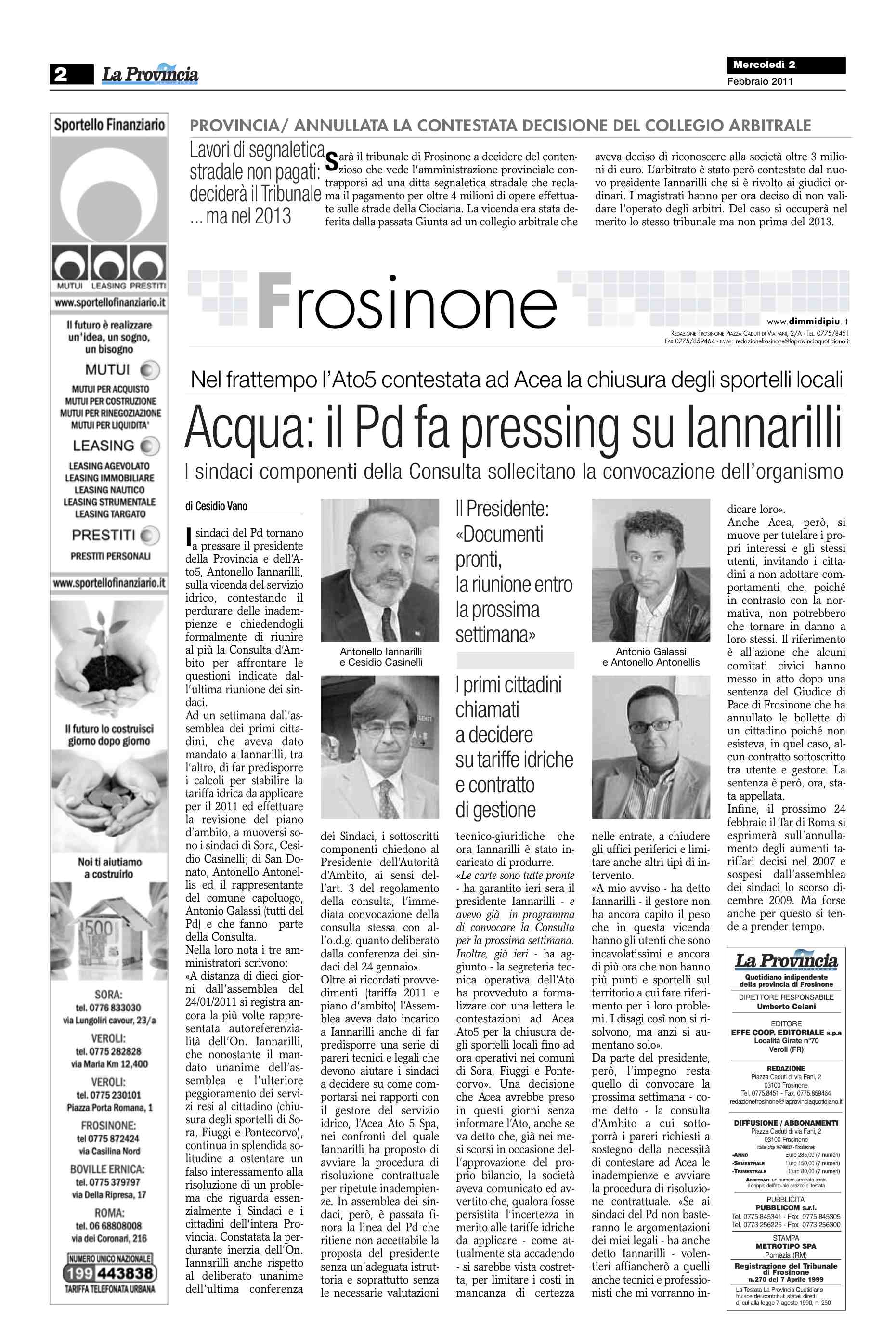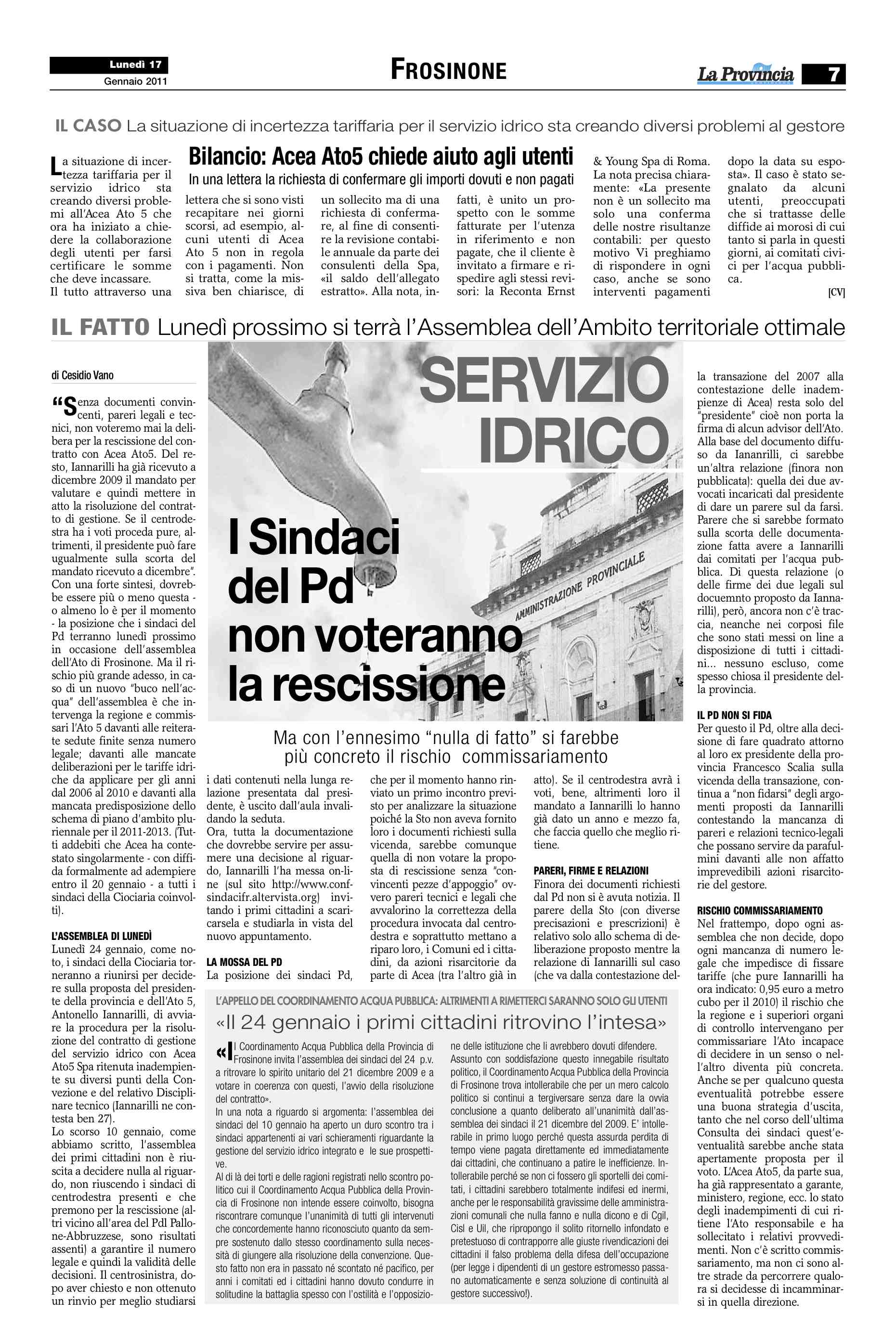 Da La Provincia Quotidiano del 7 Febbraio 2011