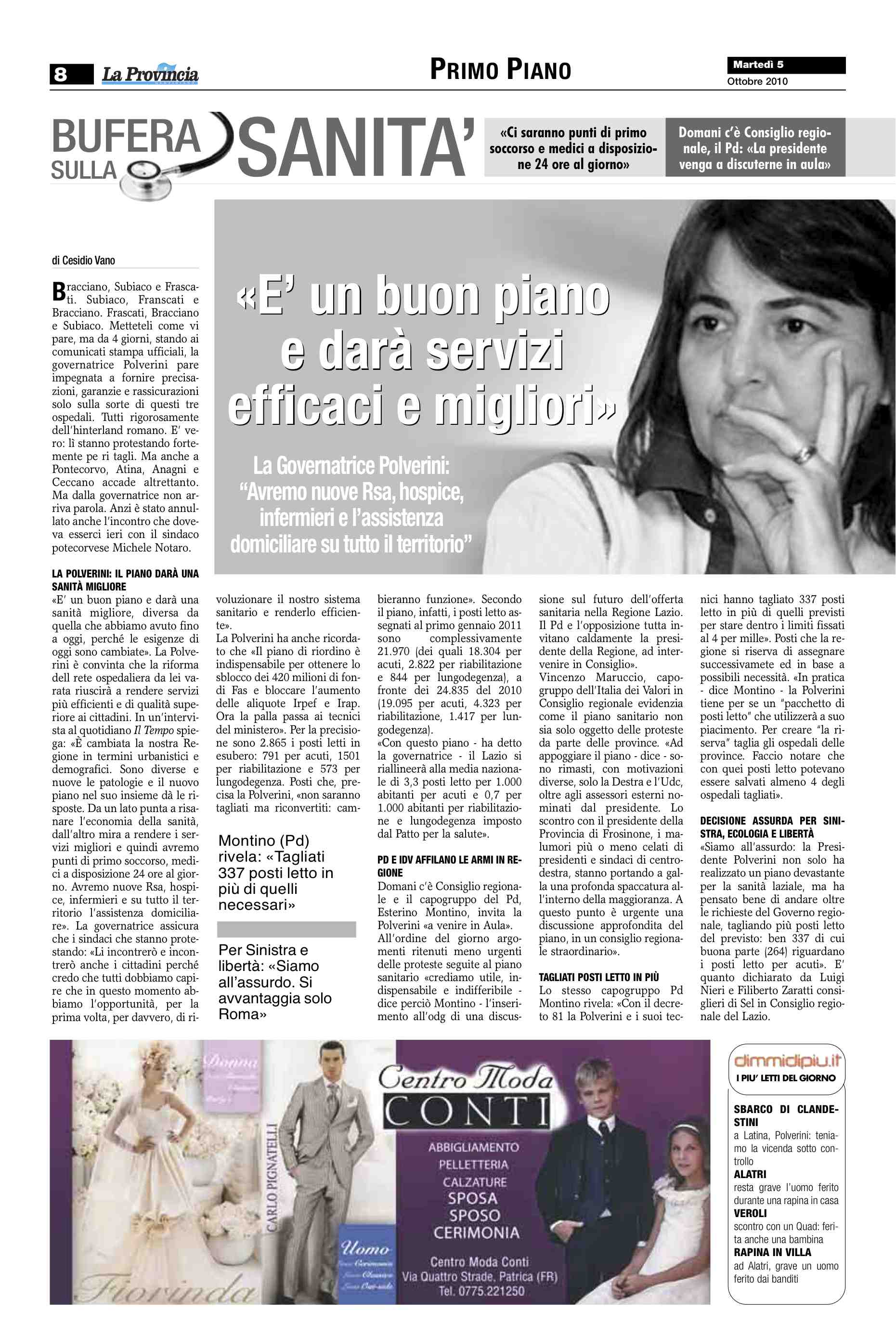 Da La Provincia Quotidiano del 9 ottobre 2010