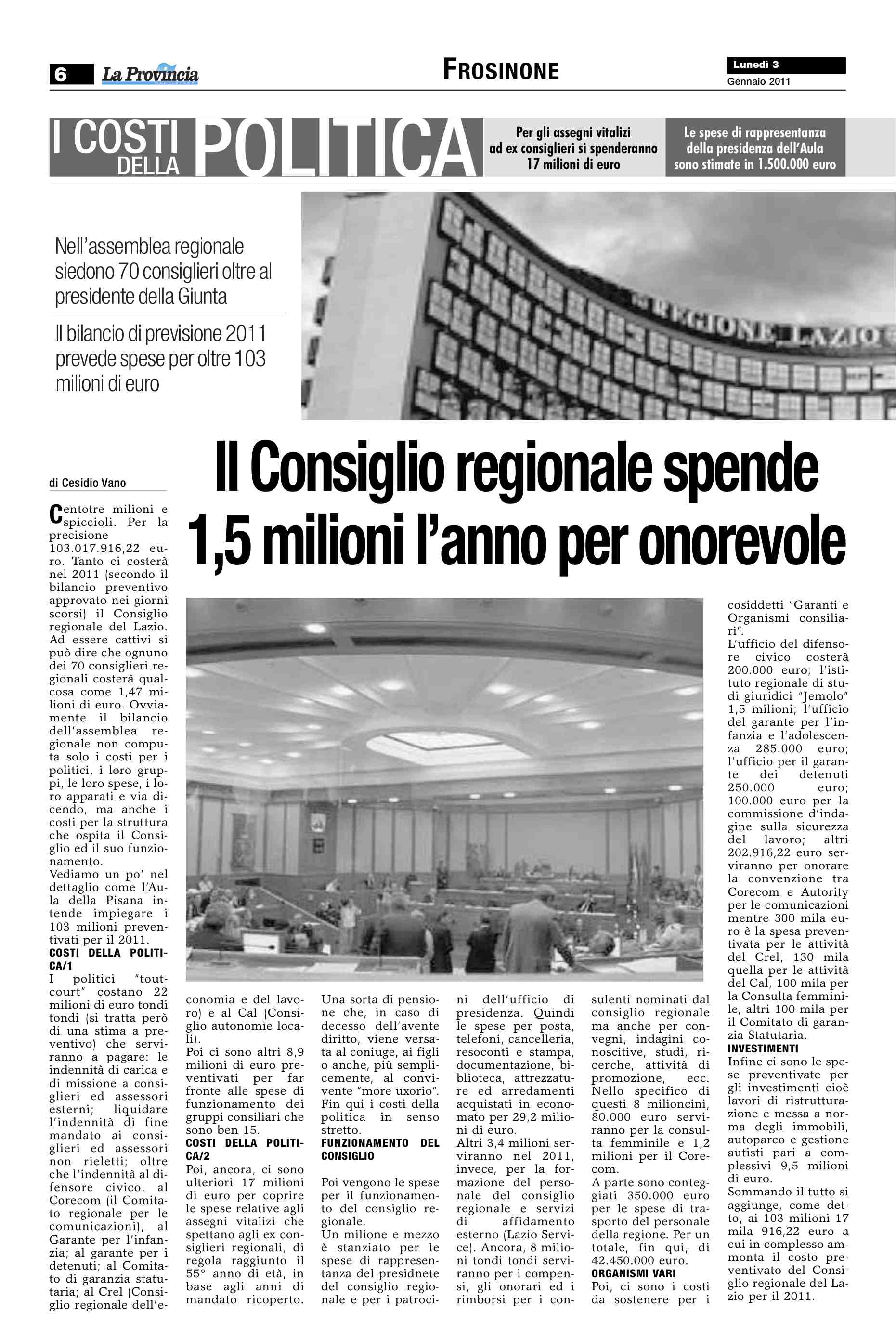 Da La Provincia Quotidiano del 3 gennaio 2011